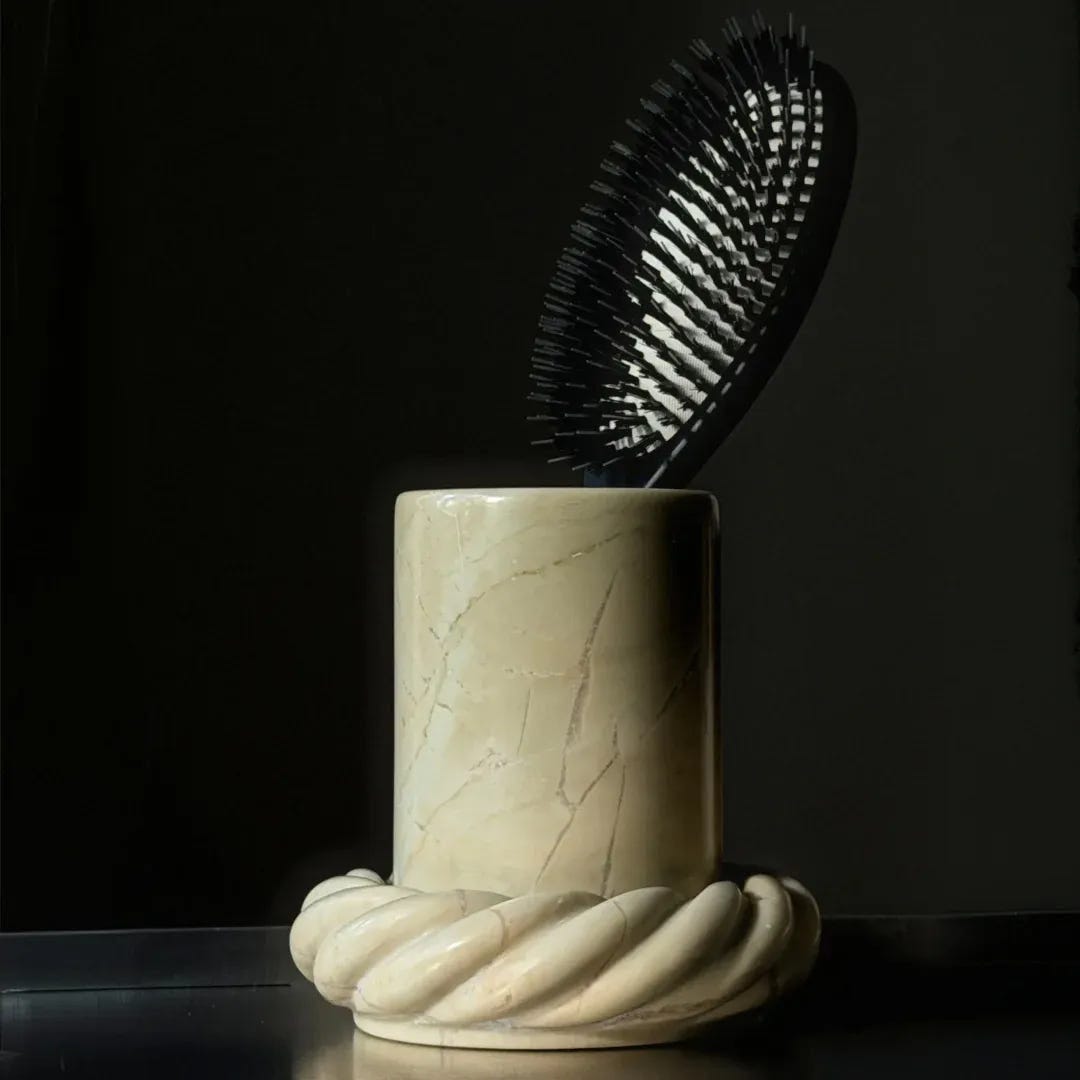 I’ve been dreaming about a proper brush holder for years. Not an afterthought — a forever piece. And for so many reasons (full lore lives on TikTok), Gabi and her team at Anastasio were the perfect partners. They understand craftsmanship, weight, proportion — how an object can feel both sculptural and useful.