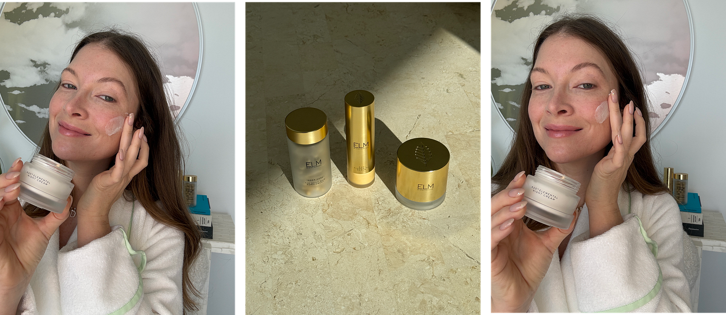 ELM Biosciences A30 Elemental Night Cream— We all know I love an overnight repair moment. I started using the A30 Elemental Night Cream before bed and have been blown away by how renewed my skin feels in the morning. It’s formulated with a modern, targeted retinoid and ELM’s proprietary A3O™ Complex to smooth fine lines, refine texture, and support firmness—without the harshness typically associated with retinoids. I’m always drawn to formulations that feel luxurious but ultimately save me time. When my barrier is supported and my skin is hydrated, my makeup sits better and I need less prep. Martha Stewart and her dermatologist, Dr. Dhaval Bhanusali, have put their touch on these formulas, and it’s impressive to see this level of technology made accessible. I like testing one formula at a time so I know exactly what’s working—and the Night Cream is an all caps KEEPER. I’ll keep you posted on the Inner Dose Daily Supplement and serum as I go.